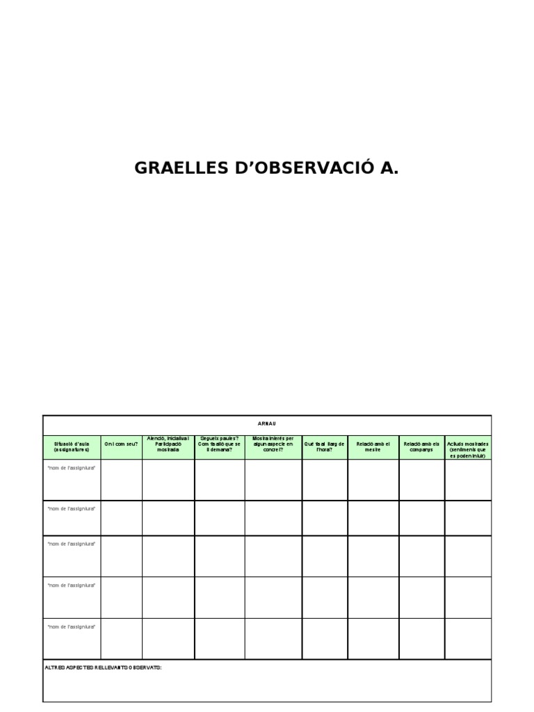 Graella D'observació A L'aula - Pauta d'observació context aula : Es treballa des de les matèries de biologia i ciències socials, incloses en l'àmbit de projectes i també des de visual i plàstica i informàtica.. Es treballa des de les matèries de biologia i ciències socials, incloses en l'àmbit de projectes i també des de visual i plàstica i informàtica. El passat dimecres 7 d'abril el vàrem… llegeix més» L'alumnat de 1r d'eso ha estrenat el trimestre amb un projecte d'observació de l'entorn.